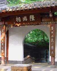 1173年夏,他被任命为蜀州(四川崇庆)通判(副州官)。不久,又被调到嘉州(四川乐山),年底才又回到蜀州。报国无门,爱民无力,终于在1174年十月,陆游又被调到荣州(四川荣县)去摄理州事。陆游,在蜀州虽然只有一年多时间,但对蜀州感情十分深厚。即使晚年回到浙江山阴老家,也还写了许多记念蜀州的诗篇。蜀州人民也怀念放翁诗人,诗人长溘之后,人们的罨花池旁为他和赵忭([宋代]一御吏,曾作蜀州官)修一庙宇,称赵陆公祠,后改称“二贤祠”。现在,“二贤祠”已改建为“陆游纪念馆”。