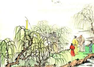 渭城早晨的细雨,湿润了路上轻微的浮尘, 客舍旁边一片青翠,嫩柳色绿清新。 劝您再喝完一杯酒, 向西出了阳关,再也没有老朋友了。 |