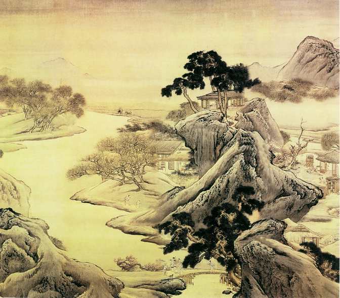 中国的古典诗歌很重视创造意境。陶渊明的《桃花源记》所创造的意境,便是理想化了的小农经济下的田园生活。《桃花源记》既假设了一个理想的社会环境,也虚拟了一个迷人的生态环境。山外是一条可以打渔的溪流,两岸有将近一公里的桃花林,“夹岸数百步,中无杂树,芳草鲜美,落英缤纷”;山里面“土地平旷,屋舍俨然,有良田美池桑竹之属。阡陌交通,鸡犬相闻”;“黄发垂髫,并怡然自乐”。