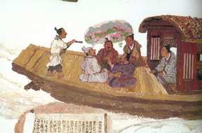 他发现了和仙人有关的什么什么东西;另外还有一个因素,就是说有些百姓为了逃避战乱,他们在山沟或山谷里建立起类似堡垒一样的东西据险自守,在里面自给自足,过着一个半与世隔绝的生活。我想这样的一些社会现实,以及由社会现实产生的传说都对陶渊明产生了影响。这样三个因素他自己、田园生活、对人生的这种向往,这个思想文化上这种传统、血脉联系,再加上当时现实里的这样一些事情融合到了一起,经过他的一种主体的艺术的加工,于是有了“桃花源”。
