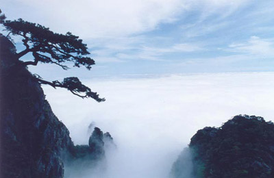 缭绕,云海为其特色。宋代大诗人苏东坡写的著名诗句:“横看成岭侧成峰,远近高低各不同。不识庐山真面目,只缘生在此山中。”写的就是庐山云雾的奇景。在山上到处都可以看到云海,但最好的观看云海奇景的地方是在花径以西,佛手岩上望沙河一带;或在牯岭东北的小天池上望东林寺、西林寺、鄱阳湖一带。浓雾使人难以辨清哪是峰,顷刻之间,烟消云散,眼前又是一片秀丽景色。有时,云雾冉冉上升,慢慢地竟将整个庐山淹没在茫茫云海中。有时在庐山还可以看到“瀑布云”的奇景,有时它像是涓涓细流,流入幽谷,有时又似奔腾的江河,汹涌澎湃,飞流直下,一泻千尺。庐山雨雾出名,庐山出产的云雾茶也是茶叶中的佳品。