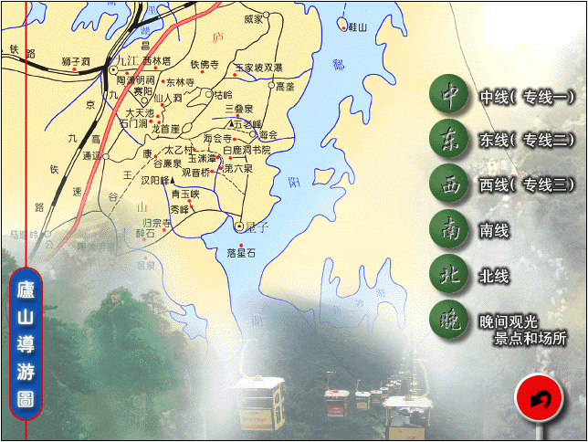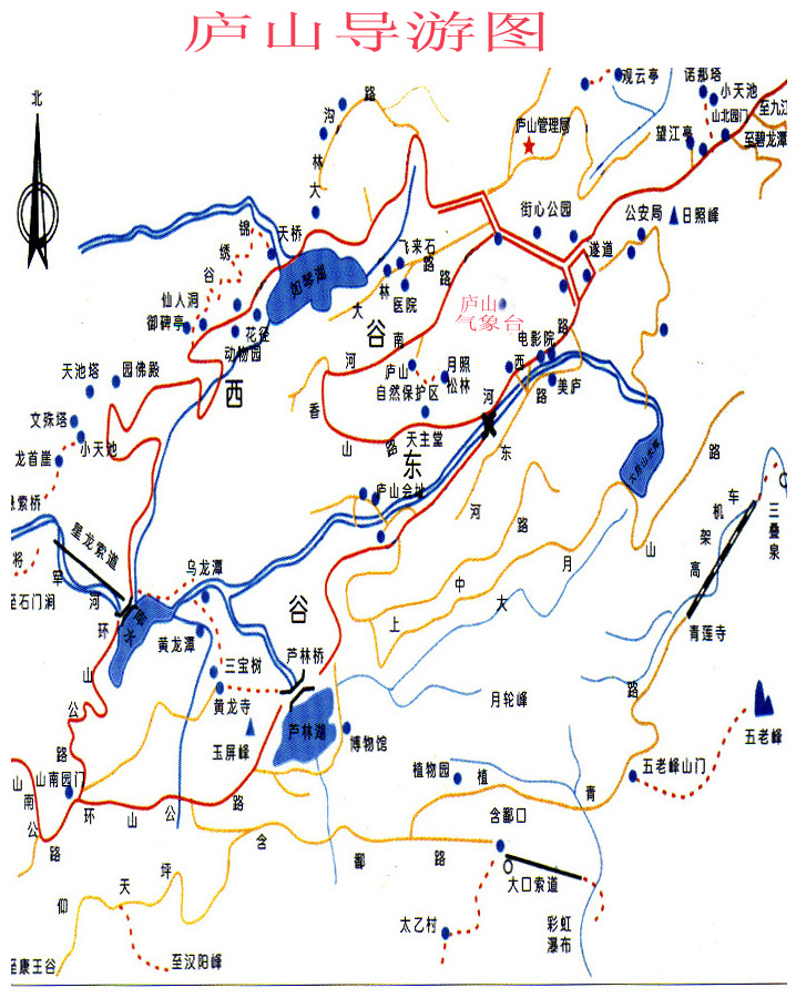 庐山:在江西省九江市南,自古以来就是浏览胜地。