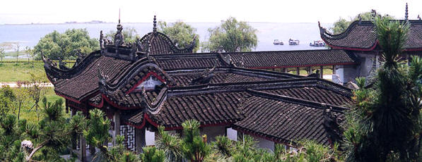 处——城陵矶,有一块名为三江口的地方。从此处远眺洞庭,但见湘江滔滔北去,长江滚滚东逝,水鸟翱翔,百舸争流,水天一色,景色甚是雄伟壮观。刘海戏金蟾、东方朔盗饮仙酒、舜帝二妃万里寻夫的民间传说正是源于此地……湖中最著名的是君山,君山风景秀丽。它是洞庭湖上的一个孤岛,岛上有72个大小山峰,这里每天有渡轮来往航程大约一小时。游览群山需要用一天时间,早上去,下午返。既去了君山,又可畅游洞庭湖,真是一举两得。君山原名洞庭山,是神仙洞府的意思。相传4000年前,舜帝南巡,他的两个妃子娥皇、女英追之不及,攀竹痛哭,眼泪滴在竹上,变成斑竹。后来两妃死于山上,后人建成有二妃墓。二人也叫湘妃、湘君,为了纪念湘君,就把洞庭山改为君山了。现有古迹二妃墓