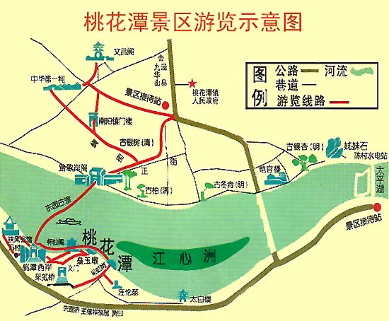 《赠汪伦》这首诗,使普通村民汪伦的名字流传后世,桃花潭也因此成为游览的胜地。为了纪念李白,村民们在潭的东南岸建起“踏歌岸阁”,至今还吸引着众多游人。