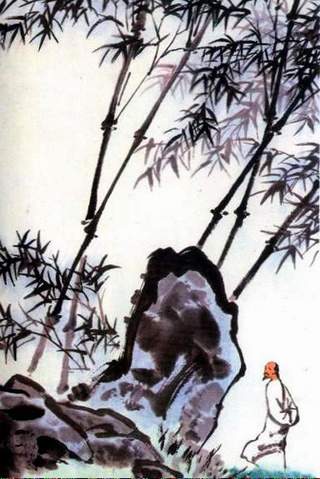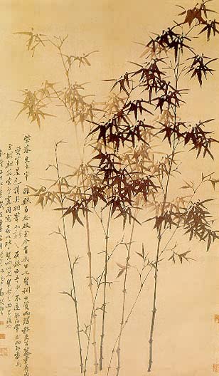自宋代以来,竹被誉为梅、兰、竹、菊“四君子”之一。它,虚心而刚直,挺拔而常青,历来被人们看作是高洁、正直、坚韧、顽强的象征。郑板结桥喜爱画竹,是因为竹最能体现自己的性格特征。郑板桥号称“三绝”:即诗、书、画。他在这三方面都是造诣极深,结成一个完整的艺术整体。形成所谓“三真”:真气、真意、真趣的特色。他擅画兰竹,以草书中竖长撇法作兰叶,多不乱、少不疏,秀劲绝伦。所画之竹苍劲萧爽,疏落有致。在他曾在自定书画润笔条例:“画竹多于买竹钱,纸高六尺价三千,任渠话旧论交接,只当秋风过耳边”。在这雅谑可掬的文字背后,隐藏着对世俗无情的揭露和讥讽。然而,郑燮重情义、念深恩,他自幼丧母,依赖费姓乳母教养成长。小时候遇上饥年,费氏每天背负郑燮上街玩耍,用自己的钱买一只饼给他吃。郑燮与乳母感情深如子,相依为命。他在怀念费氏乳母的诗中说:“食禄千万种,不如饼在手,平生所负恩,岂独一乳母”句,读来真挚感人。