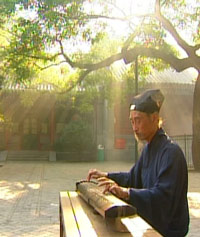 带着清凉意味的七根弦在线,我静静的听他奏出风入松林的乐曲,令人寒气顿生了。这种古调,我虽然喜爱它,但现在的人,大都不弹了。