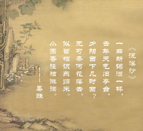 这首词抒写光阴流逝的感伤。词人以有限的生命来体察无穷的宇宙,把人生放到时空这一广大范畴中来进行思考,于是,这首词便具有某种厚重的哲理韵味了。上片三句貌似淡淡写来,其中却蕴涵着时间永恒而人生短暂的深长叹惋。下片通过最有特征的具体事物和生活细节来深化上片勾画的意境:“无可奈何花落去,似曾相识燕归来。”这是人们心中所有但却是笔底所无的一种“诗意”的感受。“花落去”与“燕归来”每交替一次,便过了一年,而人生正是在这无穷的交替之中逐渐衰老直至死亡。晏殊虽然位极人臣,但是他无法挽回流逝的时光,只能“无可奈何”地看着岁月的脚步匆匆离去。宦海风波中,晏殊也免不了有沉浮得失。在官场平庸无聊的应酬中,敏感的诗人当然会时时痛切地感受到生命的无意义消耗。这就是词人在舒适生活环境中也不能避免的“闲愁”,是摆脱不了的一种淡淡的哀伤。