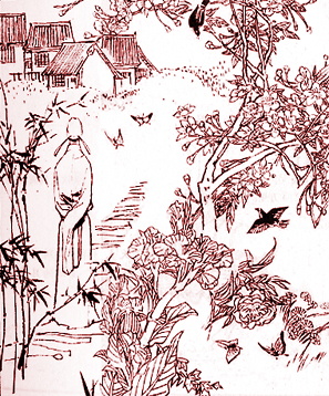 其次,盛唐人很讲究诗句声调的和谐。他们的绝句往往能被诸管弦,因而很讲协律。杜甫的绝句不为歌唱而作,纯属诵诗,因而常常出现拗句。如此诗“千朵万朵压枝低”句,按律第二字当平而用仄。但这种“拗”决不是对音律的任意破坏,“千朵万朵”的复叠,便具有一种口语美。而“千朵”的“朵”与上句相同位置的“四”字,虽同属仄声,但彼此有上、去声之别,声调上仍具有变化。诗人也并非不重视诗歌的音乐美。这表现在三、四两句双声词、象声词与叠字的运用。“留连”、“自在”均为双声词,如贯珠相联,音调宛啭。“恰恰”为象声词,形容娇莺的叫声,给人一种身临其境的听觉形象。“时时”、“恰恰”为叠字,既使上下两句形成对仗,使语意更强,更生动,更能表达诗人迷恋在花、蝶之中,忽又被莺声唤醒的刹那间的快意。这两句除却“舞”、“莺”二字,均为舌齿音,这一连串舌齿音的运用造成一种喁喁自语的语感,维妙维肖地状出看花人为美景陶醉、惊喜不已的感受。声音的效用极有助于心情的表达。