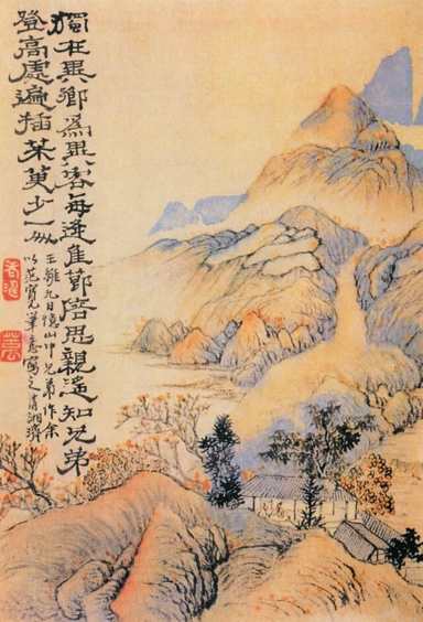 重阳节有登高的风俗,登高时佩带茱萸囊,据说可以避灾。茱萸,一名越椒,一种有香气的植物。三四两句,如果只是一般化地遥想兄弟如何在重阳日登高,佩带茱萸,而自己独在异乡,不能参与,虽然也写出了佳节思亲之情,就会显得平直,缺乏新意与深情。诗人遥想的却是:“遍插茱萸少一人。”意思是说,远在故乡的兄弟们今天登高时身上都佩上了茱萸,却发现少了一位兄弟──自己不在内。好象遗憾的不是自己未能和故乡的兄弟共度佳节,反倒是兄弟们佳节未能完全团聚;似乎自己独在异乡为异客的处境并不值得诉说,反倒是兄弟们的缺憾更须体贴。这就曲折有致,出乎常情。而这种出乎常情之处,正是它的深厚处、新警处。杜甫的《月夜》:“遥怜小儿女,未解忆长安”,和这两句异曲同工,而王诗似乎更不着力。