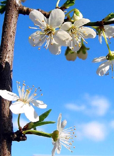 墙角处有几枝洁白的梅花,