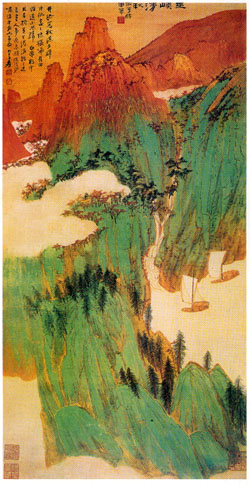 “春冬之时,则素湍绿潭,回清倒影,绝多生怪柏,悬泉瀑布,飞漱其间,清荣峻茂,良多趣味。”写春冬时三峡情景:水退潭清,风景秀丽。以“春冬之时”领起,很自然地转换了描写对象,时易则景异,镜头中摇出了另外一种景象。白色的急流回映着清光,绿色的水潭倒映着景物的影子。这里先写俯视江中所见。“湍”是动态,“潭”为静境。以“素”饰“湍”,水如白练,明净轻快,上有清光回照,白中间青,水光变幻。深水为潭,以“绿”饰“潭”,益见深沉宁静。水中有影,则水平如镜,倒影入潭,更觉风光秀丽。急流上波光粼粼,深潭里景物重重,动静相杂,色彩各异,相映成趣,堪称秀丽隽逸。下文即写仰视所见,由峡底写到山上。以“绝”状山,以“怪”写柏,道出了当地的自然特征。山岩陡削,高耸入云,故为“绝”。山上的柏树,托足于岩石之间,正午之时方见日光,它要曲体向阳,加之峡窄风大,自然枝干扭曲,何况年代久远,当然要变成“怪”形。在这人迹罕至、鸟兽少见的境地,“怪柏”显示着旺盛的生命力和坚强的意志,给山水之间投进了一股生命的活流,使人顿觉生意盎然。作者写此,还只是给“悬泉瀑布”勾勒出一个背景。山静、泉飞、柏怪、水奇,静中有动,声色纷沓,山水相配,构成了一幅挺拔超脱的图画,这和“素湍绿潭,回清倒影”又大为异趣。最后作者总括说:水清、木荣、山峻、草茂,实在富有趣味。以极为精练的四字,状写了四种景物,且各具特色,由景境导出了作者的心境。