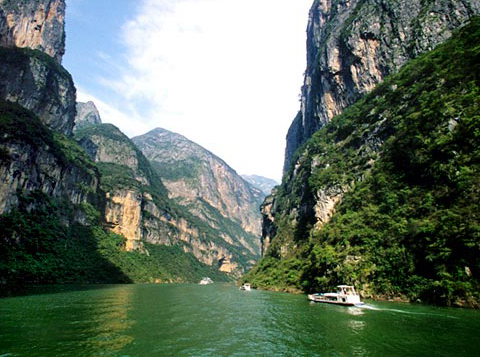 从三峡七百里中,两岸高山连绵不绝,没有一点中断的地方;重重的悬崖,层层的峭壁,如果不是正午和半夜,就看不见太阳和月亮。